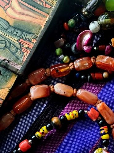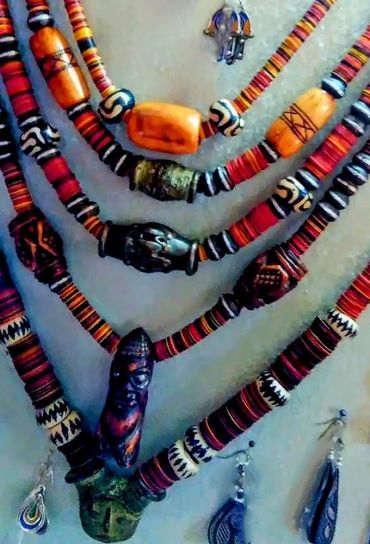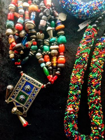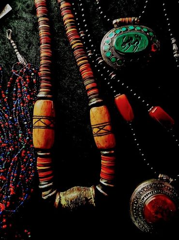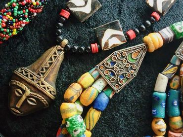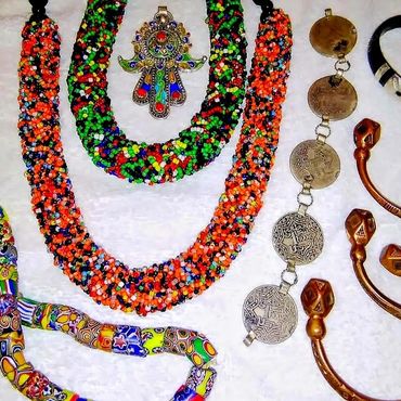 Choose from our dazzling collection of necklaces, bangles and bracelets, earrings, amulets, and antique African trading beads.