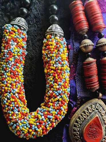This tribal jewelry is highly symbolic and is for the most part silver based and often incorporates colourful enamels and semi-precious stones. More modern pieces incorporate beautiful glass beads, silks and resins.